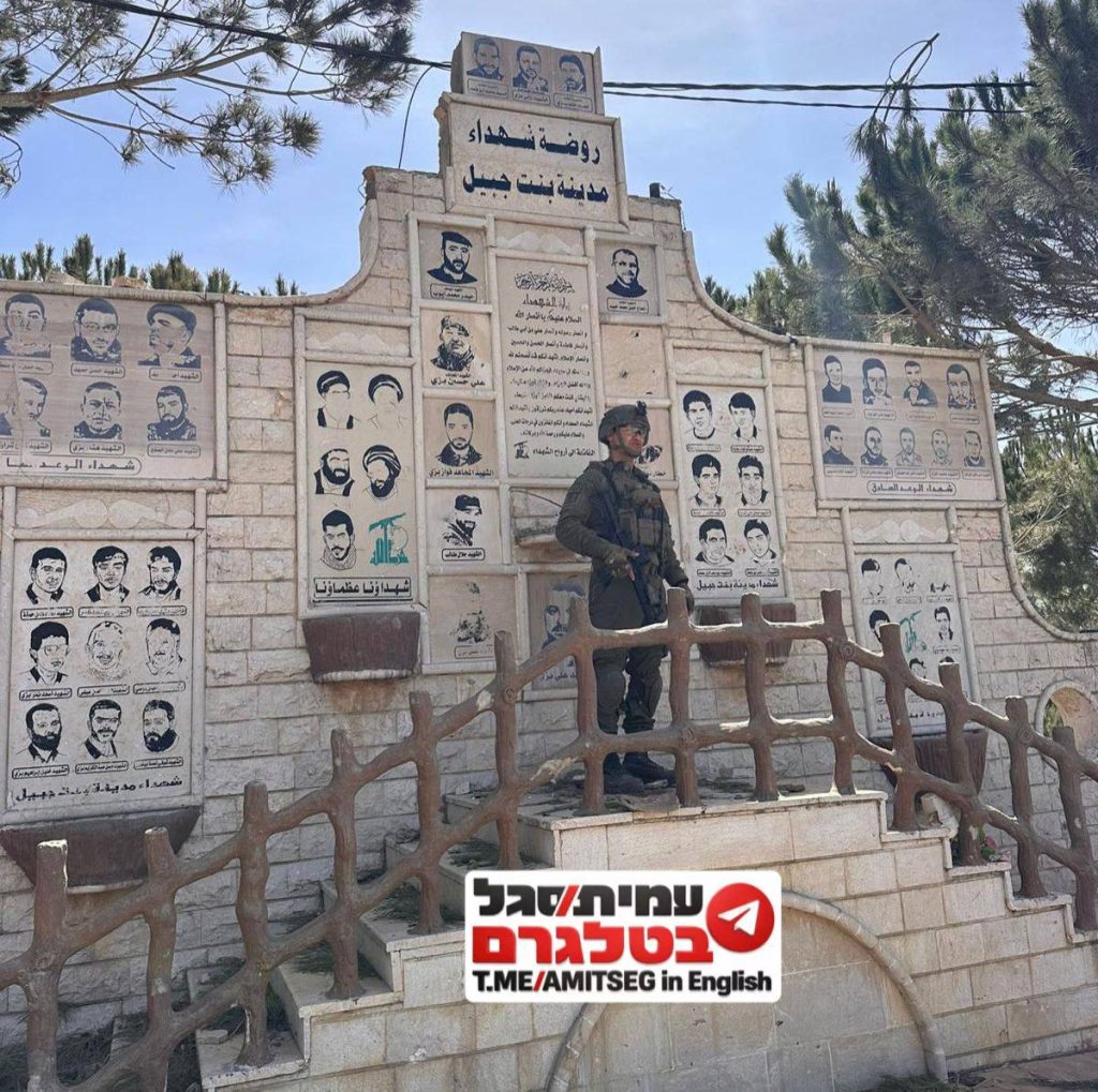 صورة لجندي اسرائيلي قرب نصب تذكاري لـ”شهداء” حزب الله في بنت جبيل