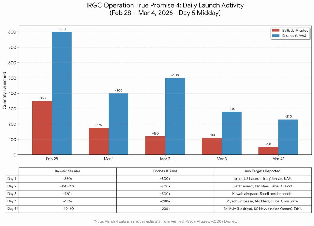 أظهرت معطيات ميدانية أن عدد الصواريخ وعمليات الإطلاق التي تنفذها إيران يتراجع تدريجياً يوماً بعد يوم، في مؤشر إلى تعثر استراتيجيتها العسكرية التي هدفت إلى استهداف منشآت اقتصادية وعسكرية في دول الخليج ومناطق مختلفة من الشرق الأوسط. وتشير التقديرات إلى أن طهران تواجه صعوبات متزايدة في تنفيذ عمليات إطلاق جديدة، رغم الاستثمارات الضخمة التي ضختها على مدى عقود في تطوير برنامج الصواريخ والطائرات المسيّرة. ويرى مراقبون أن هذا التراجع يعكس تآكلاً في القدرة العملياتية الإيرانية تحت ضغط التطورات العسكرية الأخيرة.