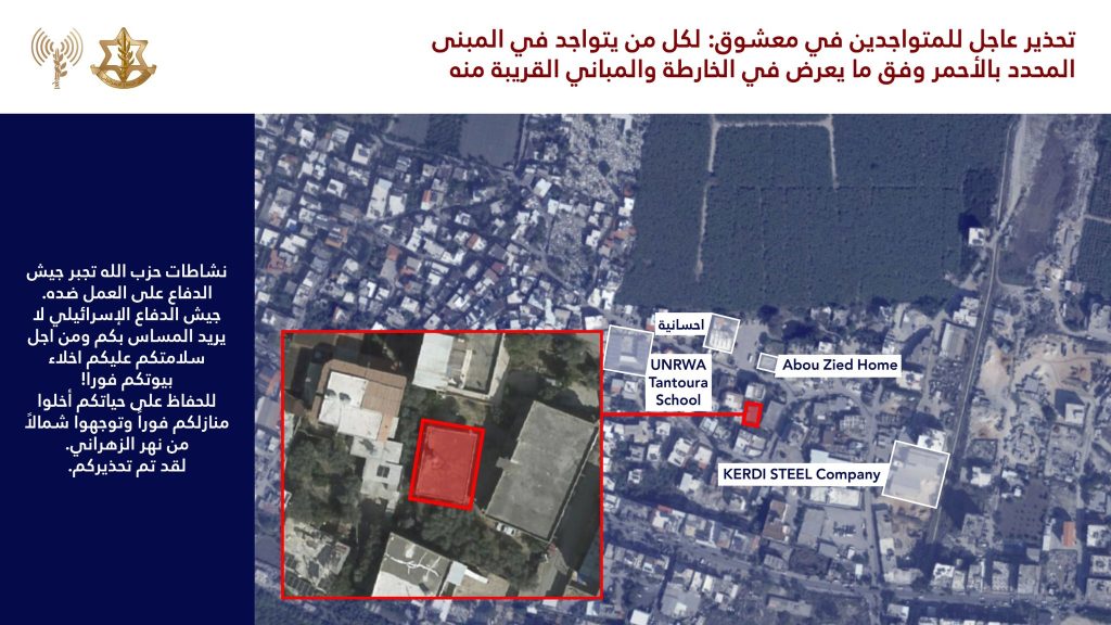 “إنذار عاجل إلى سكان جنوب لبنان وتحديدًا في المناطق التالية: