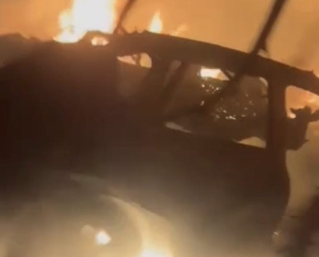 فيديو للسيرات المشتعلة اثر غارة الجناح